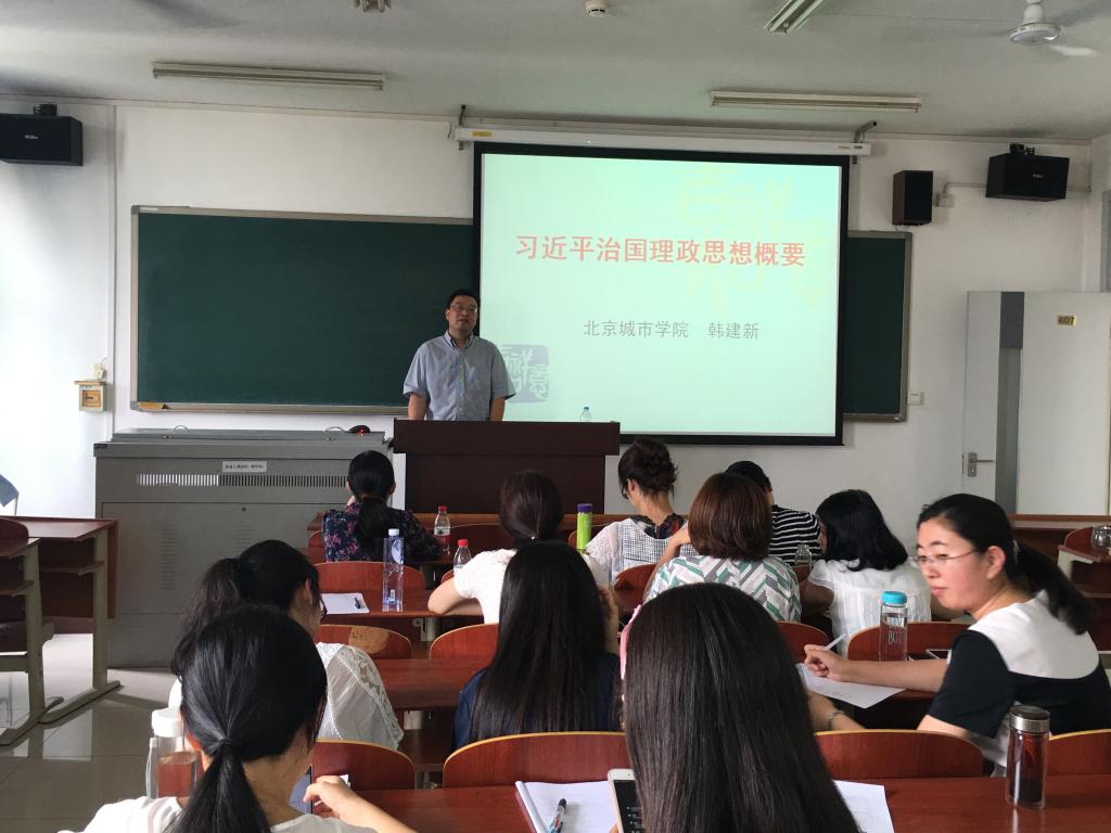 06月23日,国际语言文化学部党支部在航天城校区组织“两学一做”第二次集中学习活动。活动邀请了北京市教学名师、ac米兰思政教研室主任韩建新教授为教师党员们作习近平主席的治国理政思想概要专题报告。