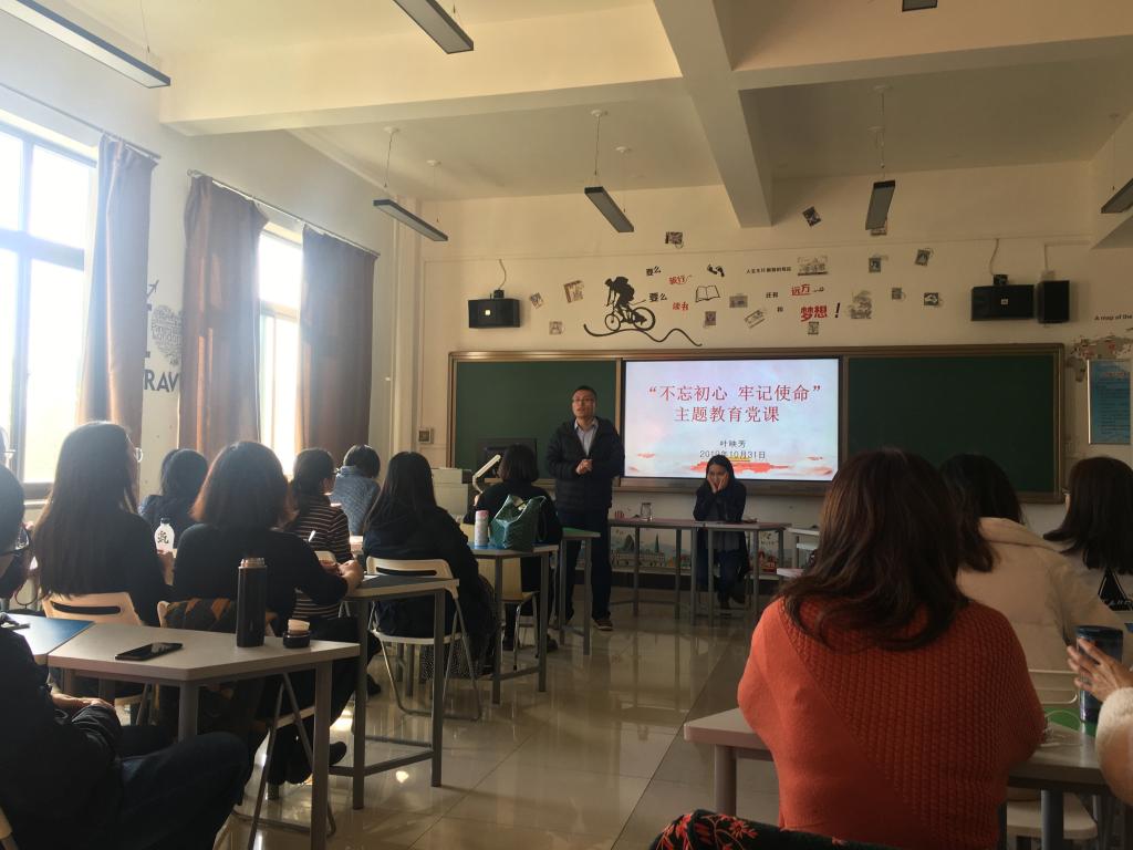 校党委委员叶映芳同志就近期学习党史、新中国史、习近平新时代中国特色社会主义思想的收获、感悟、及深入领会、开展“不忘初心、牢记使命”主题教育的重要意义,为与会人员作了一堂深入浅出、生动鲜活的主题教育专题党课。