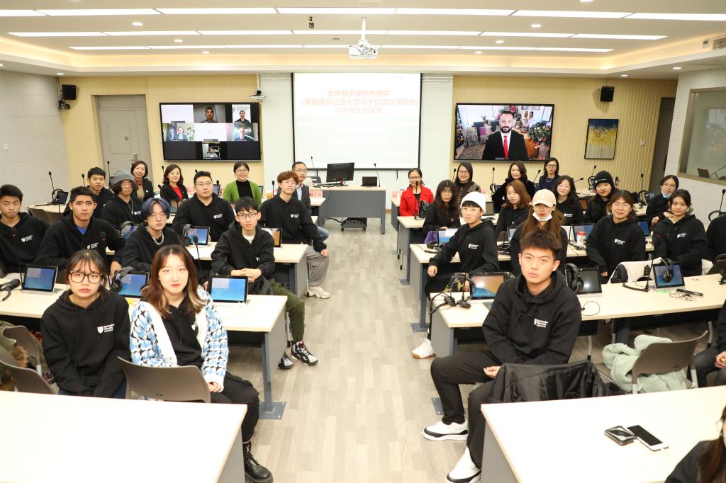 赵志强代表学校回顾了十年来我校与英国诺森比亚大学的友好合作历史。诺森比亚大学校方分别在线介绍了英国诺森比亚大学、人文艺术学院及传媒专业的详细情况。ac米兰专业负责人魏渲介绍了传播学(英国诺森比亚双学位国际课程班)发展历史、人才培养路径及培养目标。同学们就关心的课程设置与就业升学前景问题与线上的诺森比亚大学老师做了积极互动。