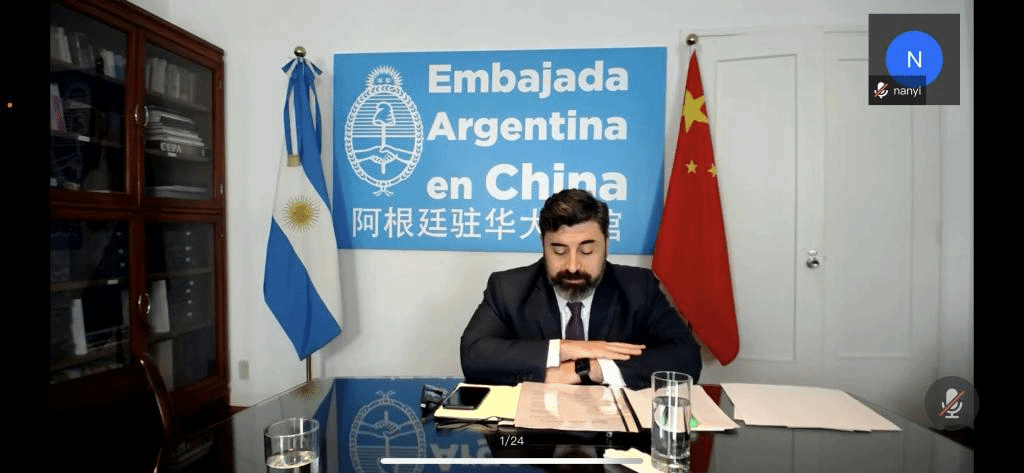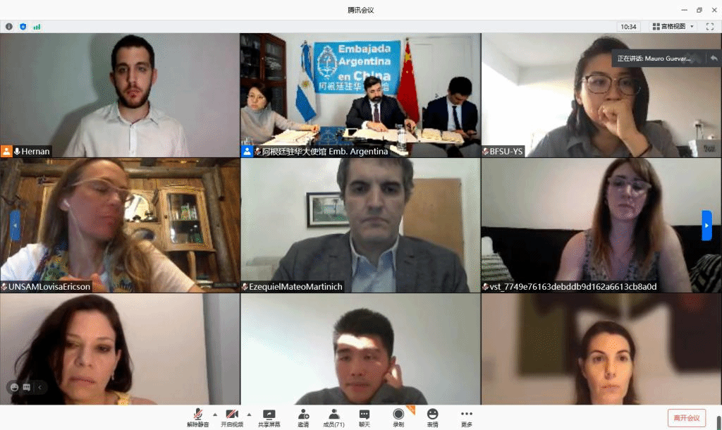 本次会议在线上举行,首先,布宜诺斯艾利斯市政府秘书长和国际关系部负责人Fernando Straface发表了欢迎致辞,介绍了本次会议旨在为中阿大学提供交流的平台,使两国大学之间建立起联系,共同促进西班牙语、汉语的发展以及两国间高等教育方面的交流合作。致辞结束后,阿根廷驻华使馆为中阿大学提供了限时一对一交流的机会。