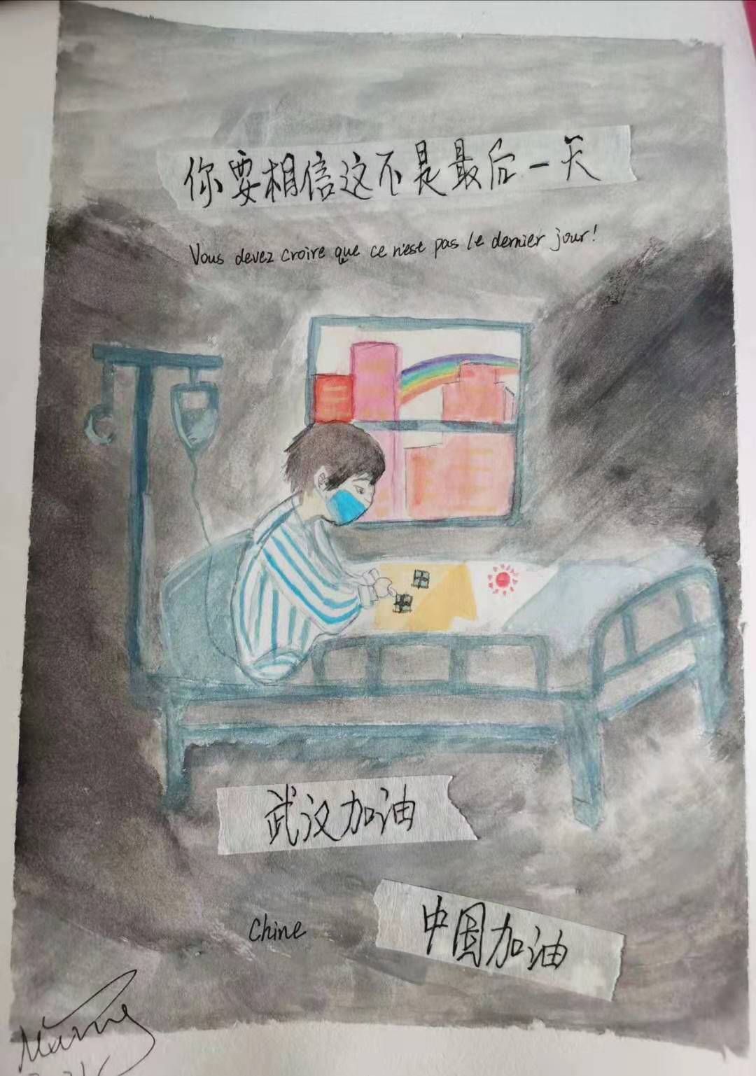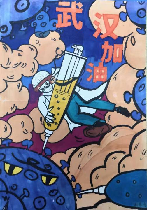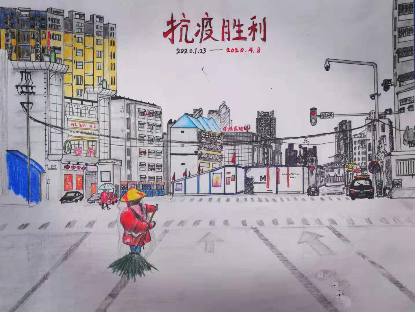 对于能在这次水墨抗疫情活动中获得第一名,我十分的激动高兴,首先感谢老师与同学的认可,谢谢大家对我作品的欣赏与支持,我的作品分两个板块画出了武汉封城开始到结束的同一个街头。武汉封城结束也标志着中国抗疫进入了决胜阶段,有着独特的纪念意义,这就是我作品的由来,最后也感谢文传学部贯通制学生会宣传部的支持与同学的帮助。