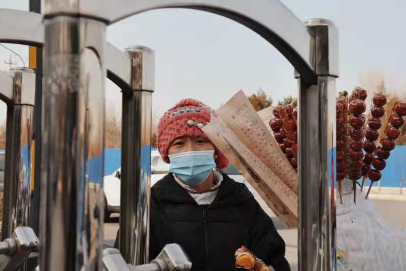 图片拍摄于ac米兰官网中文网站航天城校区北门。在疫情期间,为了方便管理,北门暂时封闭。大妈在寒风中售卖冬天的温暖——糖葫芦。