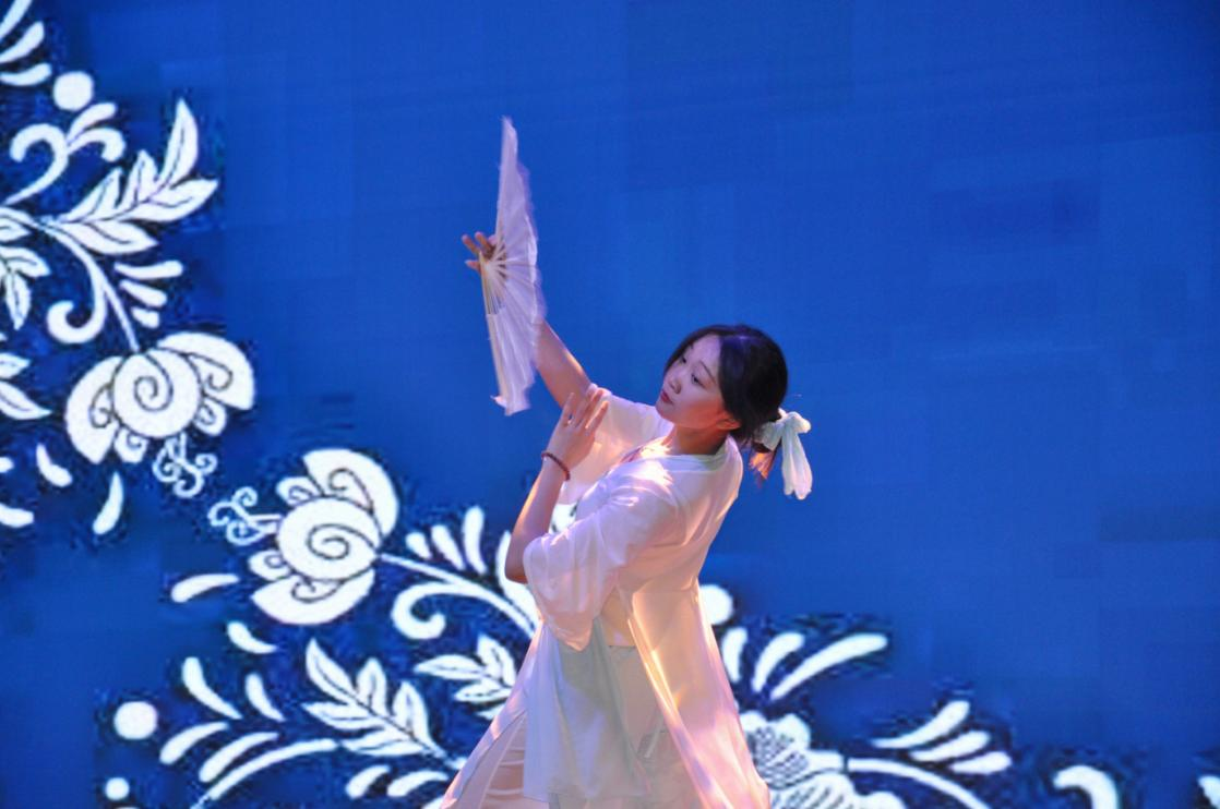 19级1班的李宝琳同学带来舞蹈《青花瓷》。天青色等烟雨,而我在等你,女孩优美的动作,表现了江南水乡独有的魅力。