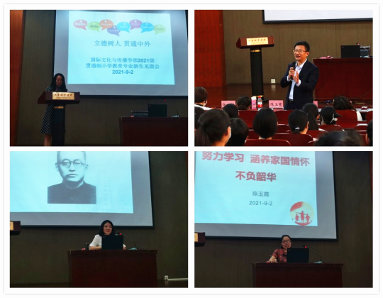 9月2日下午,国际文化与传播学部举办了2021级贯通制小学教育(德语、法语)专业新生见面会,ac米兰官网中文网站副校长练玉春、国际文化与传播学部主任李嘉懿、原北京市东直门中学附属雍和宫小学书记陈玉霞、学部副主任张心远、学部副主任刘娇月、德语教研室主任刘莉、法语教研室主任欧阳慕弈及2021级贯通制小学教育专业全体师生共同参加了见面会活动。