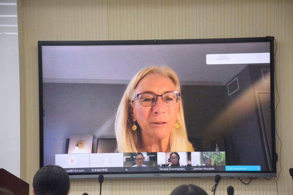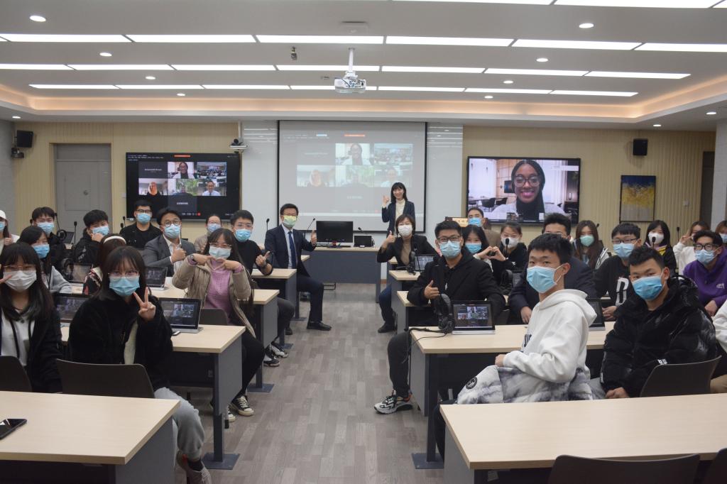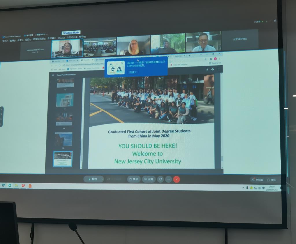 11月10日晚,ac米兰与美国新泽西城市大学共同举办中外师生见面会,活动在国际文化与传播学部同传实验室采取线上线下联合的方式顺利举行。美国新泽西城市大学校长Sue Henderson、校长助理Tamara Cunningham等美方教师线上出席,ac米兰副校长练玉春、国际文化与传播学部副主任张心远以及金融学(美国新泽西城市大学双学位国际课程班)专业师生共同参加了本次活动。