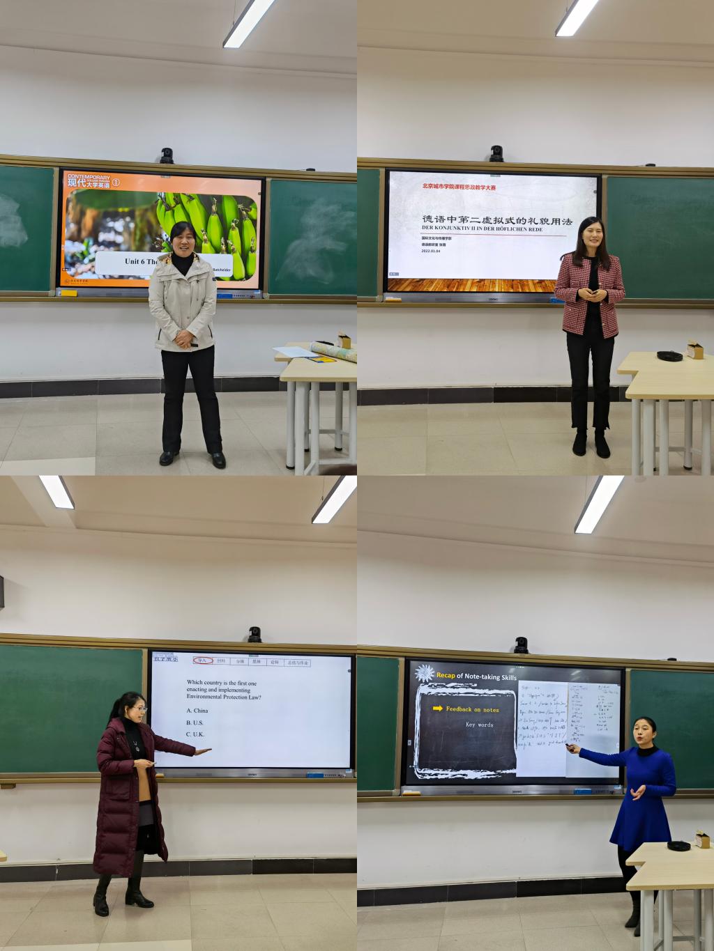 为充分发挥课堂教学的育人主渠道作用,探索和示范“课程思政”教学的有效途径和方法,国际文化与传播学部于1月4日组织了第一届课程思政教学大赛。校质保处处长赵佳因、北京市高等学校教学名师王培英、国际文化与传播学部课程建设委员会主任刘娇月、2021年北京市高校课程思政示范课程教学名师刘培担任本次大赛评委,学部教师通过线上线下相结合的方式进行了现场观摩。