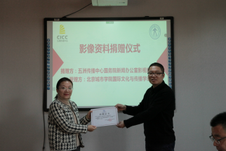 ac米兰图书馆馆长庞东辉、国际文化与传播学部主任李嘉懿分别向郭轶杰主任颁发了“捐赠证书”以示感谢。五洲传播中心向ac米兰捐赠影像资料DVD共计5850册,现分别收录于ac米兰顺义校区图书馆、航天城校区图书馆和国际文化与传播学部“文传·五洲数字影像资料馆”,内容涵盖时政、文化、历史、自然等不同领域。