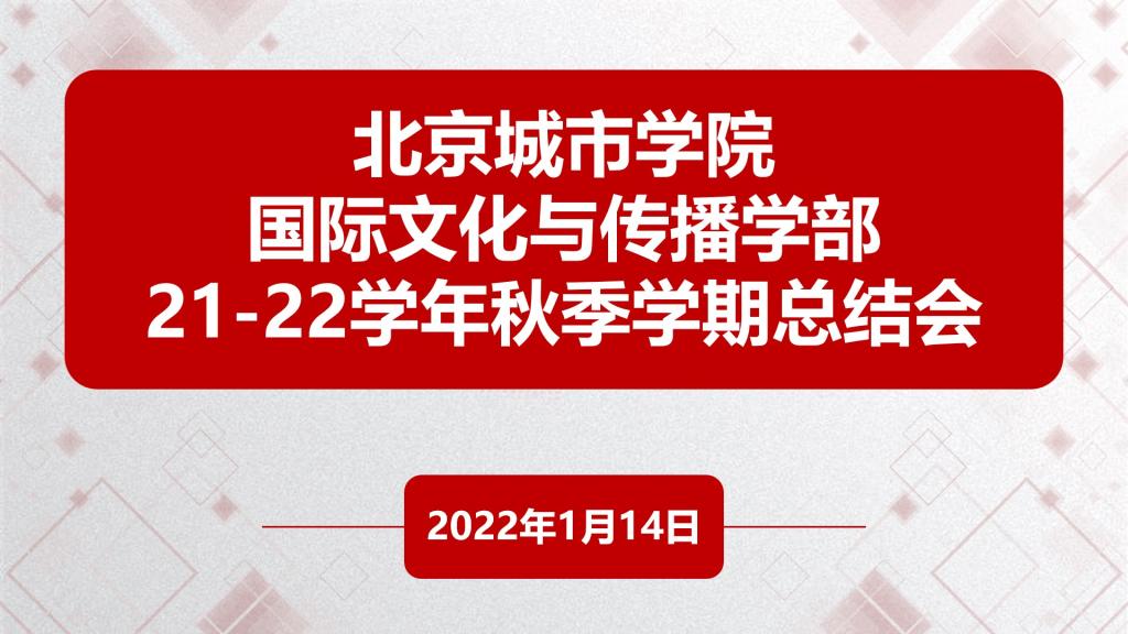 1月14日,ac米兰官网中文网站国际文化与传播学部2021-2022学年秋季学期总结会在航天城校区综合楼一层报告厅举行。文传学部全体教师参加了会议,学部副主任张心远主持会议。