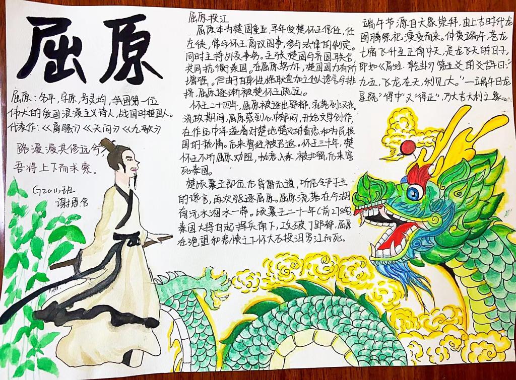 同学们通过参与活动更加深刻地理解了屈原爱国主义精神和端午节的文化内涵。同时,同学们能够以手抄报的形式讲好后疫情时代屈原端午文化故事,以中国抗疫精神传承屈原文化。该文化活动有利于激发同学们同舟共济、守望相助、共克时艰的爱国主义精神。