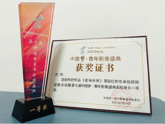 研究生武琼的纪录片《老有所养》、蔡耿羽的纪录片《公益音乐教师》、任浩和刘洋的纪录片《长腿叔叔》、沙佳佳的纪录片《遇见冬奥》获得一等奖。