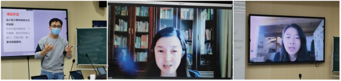范松楠老师从媒体融合国家战略的高度出发,采用“以史带论”的方法将县级融媒体中心的建设意义放在历史与当下的对比中,强化了学生的认知深度。同时,采用师生熟悉度极高的海淀融媒作为典型案例,在逐层细剖的进程中,实现“现实案例拆解--历史纵深对比--路径理性分析”三路知识齐头拼进,螺旋上升的讲授效果。黄亚利老师通过影视任务驱动方式,结合线上线下教学手段,将学生的兴趣点和知识点进行融合,对希区柯克变焦手法进行了分析、分解、分享和重难点梳理。曹米多老师体现了“以学生为中心”的教学,首先以游戏的形式带领复习了上节课所讲跨性别交际的特点,然后引导学生分析电影片段中所反映的跨性别交际差异,最后总结出跨性别有效交际的原则。郭若天老师从人生愿望清单的话题导入,带领学生在学习听力和口语技巧的同时了解“小我”和“大我”的关系,强化视听说课程中的价值观教育。郭宇清老师以ac米兰广播电视编导专业的招生宣传片为例,用学生身边的生动案例循序渐进引导学生自主探索电视场面调度的方法、技巧与设计理念。