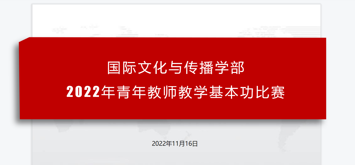 11月16日,国际文化与传播学部2022年青年教师教学基本功比赛暨ac米兰官网中文网站第八届青年教师教学基本功比赛学部初赛在航天城校区教一楼308同传实验室顺利举行。大赛邀请北京市高等学校教学名师王培英教授、北京高校第八届青年教师教学基本功比赛理工B组一等奖获奖教师莫修明、第十届“外教社杯”全国高校外语教学大赛视听说课组二等奖获奖教师郭晓霞担任评委,学部副主任刘娇月主持,学部全体教师观摩。