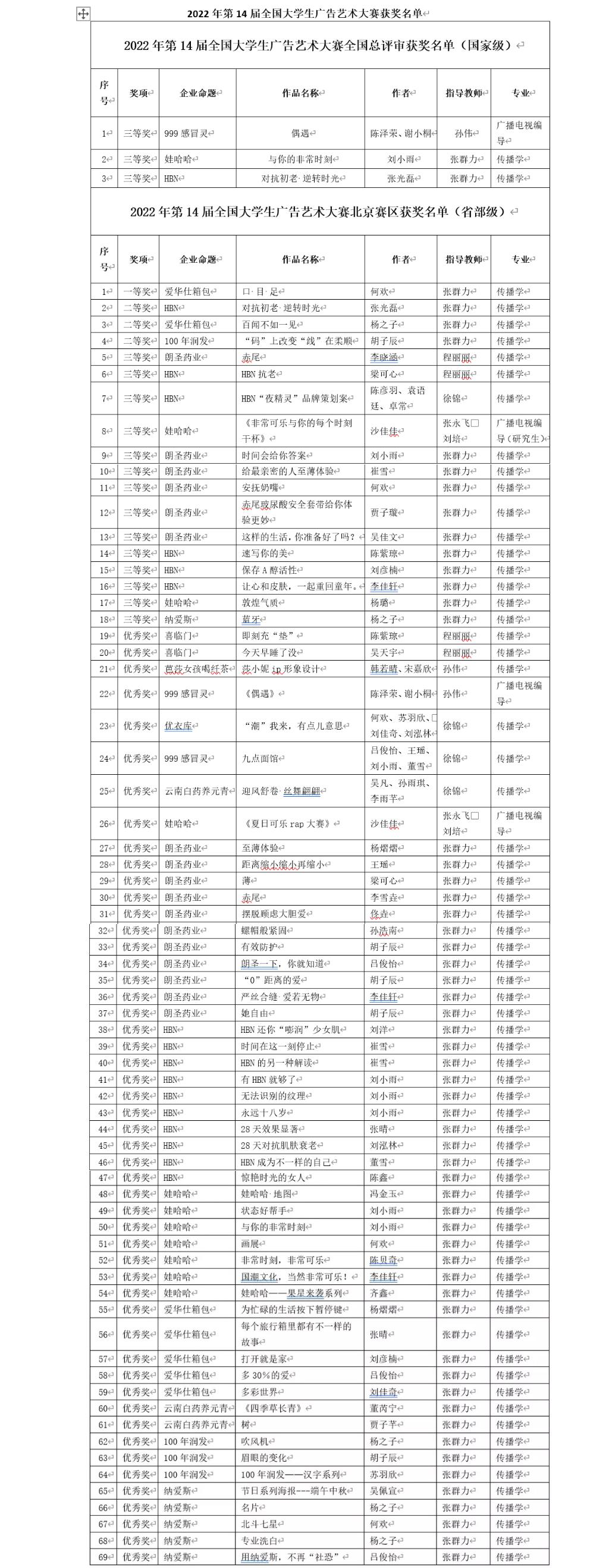 近日,由北京市教育委员会主办,北京服装学院时尚传播学院、大广赛北京赛区组委会承办的第十四届全国大学生广告艺术大赛(简称大广赛)北京赛区颁奖典礼在线上举办。受到疫情影响,本次颁奖典礼在51Meet元宇宙虚拟空间举行。国际文化与传播学部传播系获得北京赛区一等奖1项,二等奖3项,三等奖14项,优秀奖51项,优秀指导教师奖1项;获得全国赛区三等奖3项;总计获得第14届大广赛各级各类奖项73项。