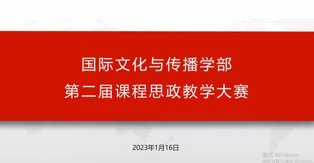 1月16日,国际文化与传播学部举办第二届课程思政教学大赛。比赛特别邀请第八届北京高等学校教学名师王培英教授、第九届北京高等学校教学名师韩建新教授、第九届北京高校青年教师教学基本功比赛文史类B组一等奖、最佳演示奖、最佳教案奖获得者陈秀明副教授担任评委,学部副主任刘娇月主持,学部全体教师观摩。