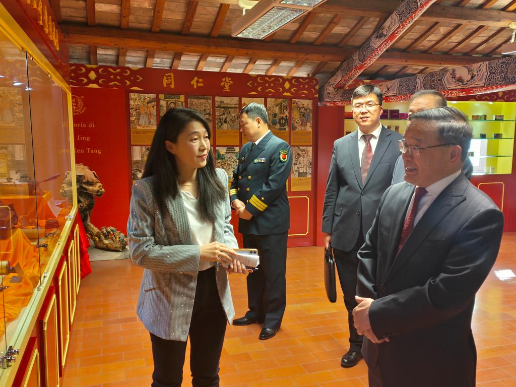 贾贵德参观了孔院中医药博物馆及图书馆,并与孔院工作人员进行了亲切座谈。座谈中,他重申了孔院传授中文、传播中国文化、促进国际交往、联络国民情感的重要使命,对圣马力诺孔院的办院成果予以肯定,并高度赞扬了孔院在把握重大时间节点、突出代表性主题办院等方面的创意举措。