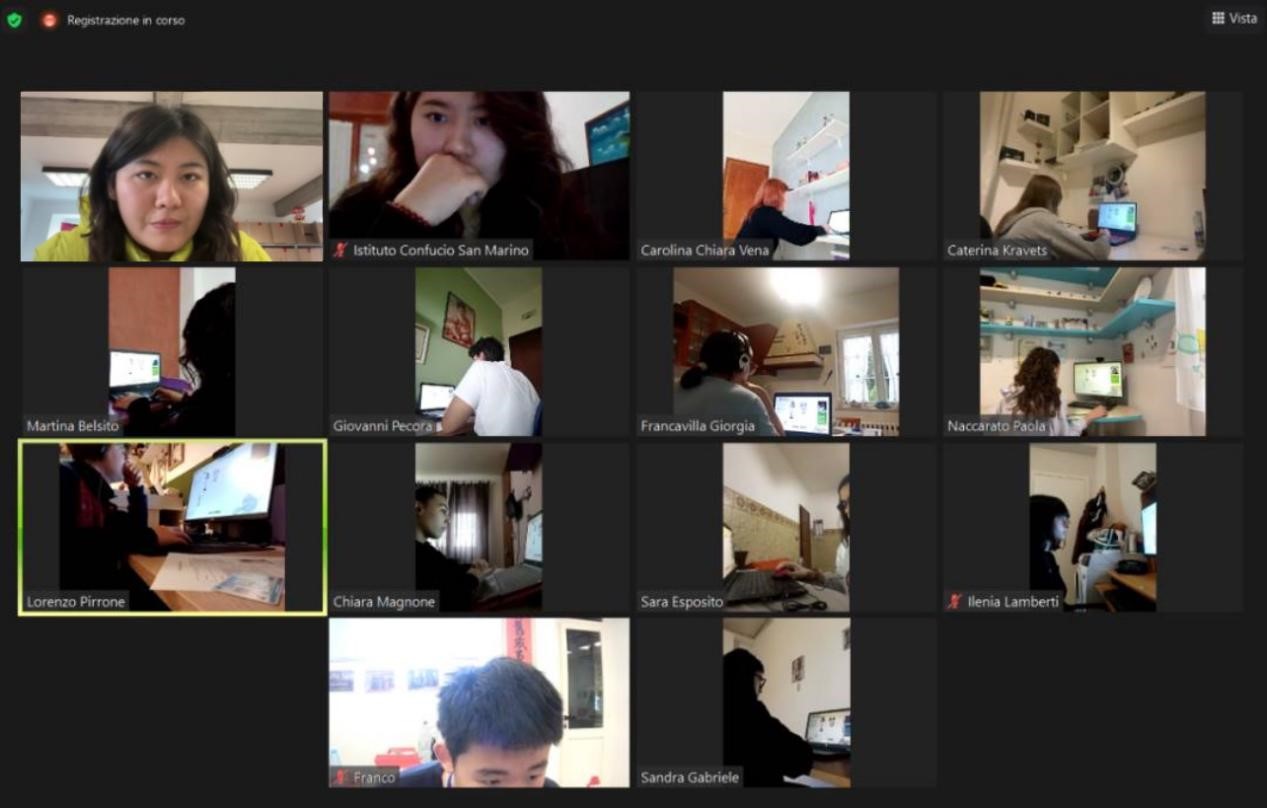考试分为线上、线下两种途径,其中圣马力诺高中以及意大利里米尼市语言高中的学生在孔院参加了线下考试,意大利科森扎市卢克雷齐娅·德拉瓦莱(IIS Lucrezia della Valle)学校的24名学生参加了线上考试。院长及志愿者老师们为确保考试顺利进行开展了多次考前考务会,指导学生进行信息填报以及模拟测试。