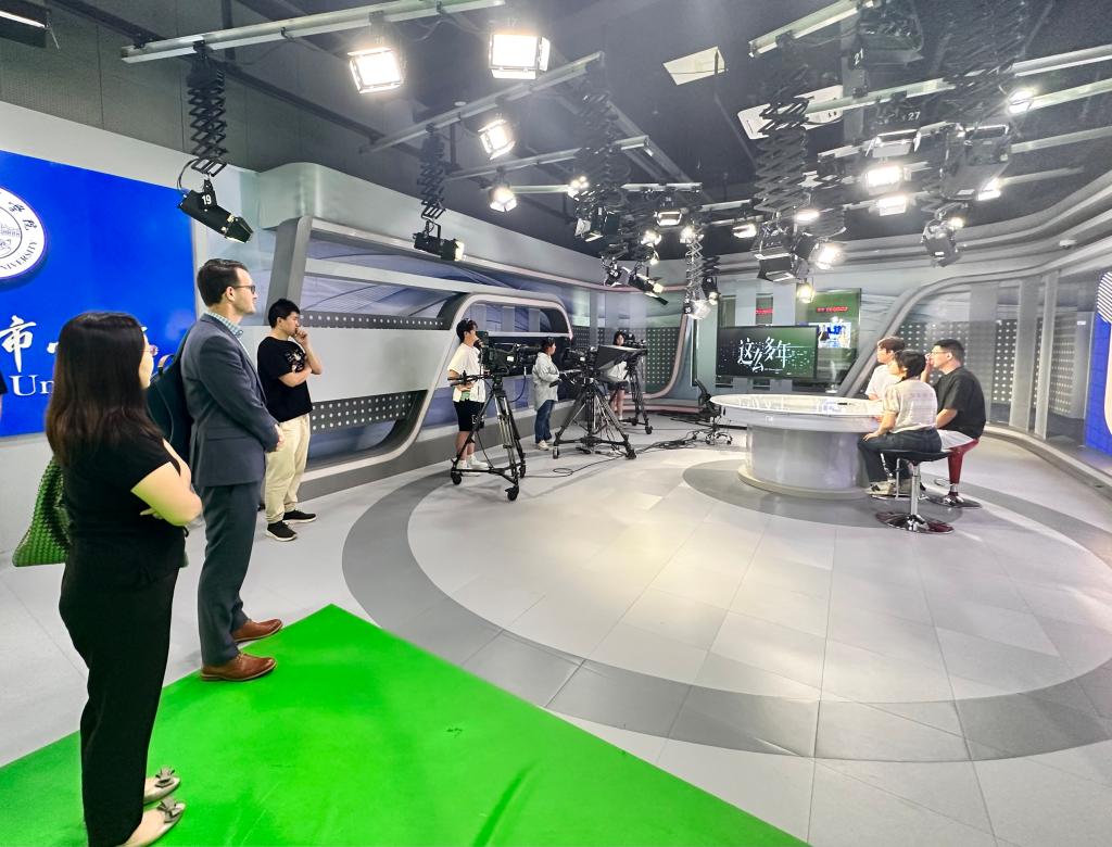 诺大一行参观了全媒体演播厅、录音实验室、同传实验室等传媒及外语教学实验室。两校就进一步在传播学(国际课程班)专业开展联合培养及学术交流活动进行了详细交流并达成一致。