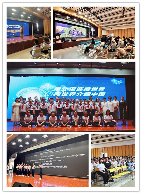 活动中,文传学部副主任张心远致欢迎词,热烈欢迎北京八中京西附小师生的到来。德语专业展示了在2023年全国大学生德语配音大赛中获得三等奖的德语配音作品。北京八中京西附小学生在西班牙语毕业生徐铭志的指导下,表演了精彩的原创西班牙语话剧,节目展演环节促进了大小学生外语文化交流,展示了外语文化学习的丰硕成果。