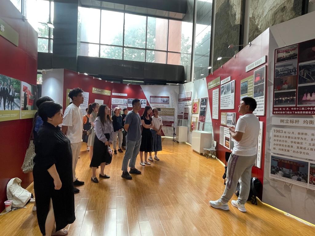通过展陈的实物、照片以及志愿者同学的生动讲解,教师党员共同回顾了法大七十余年的奋斗历程,学习了法大在深入贯彻落实习近平总书记考察法大重要讲话精神和勉语精神、完成交付习近平总书记交办的“创新发展中国特色社会主义法治理论体系研究”重大课题和在全面依法治国、法治人才培养、青年成长成才等方面取得的成绩,尤其是在科学研究、服务全面依法治国和法治中国建设等方面的亮点工作。