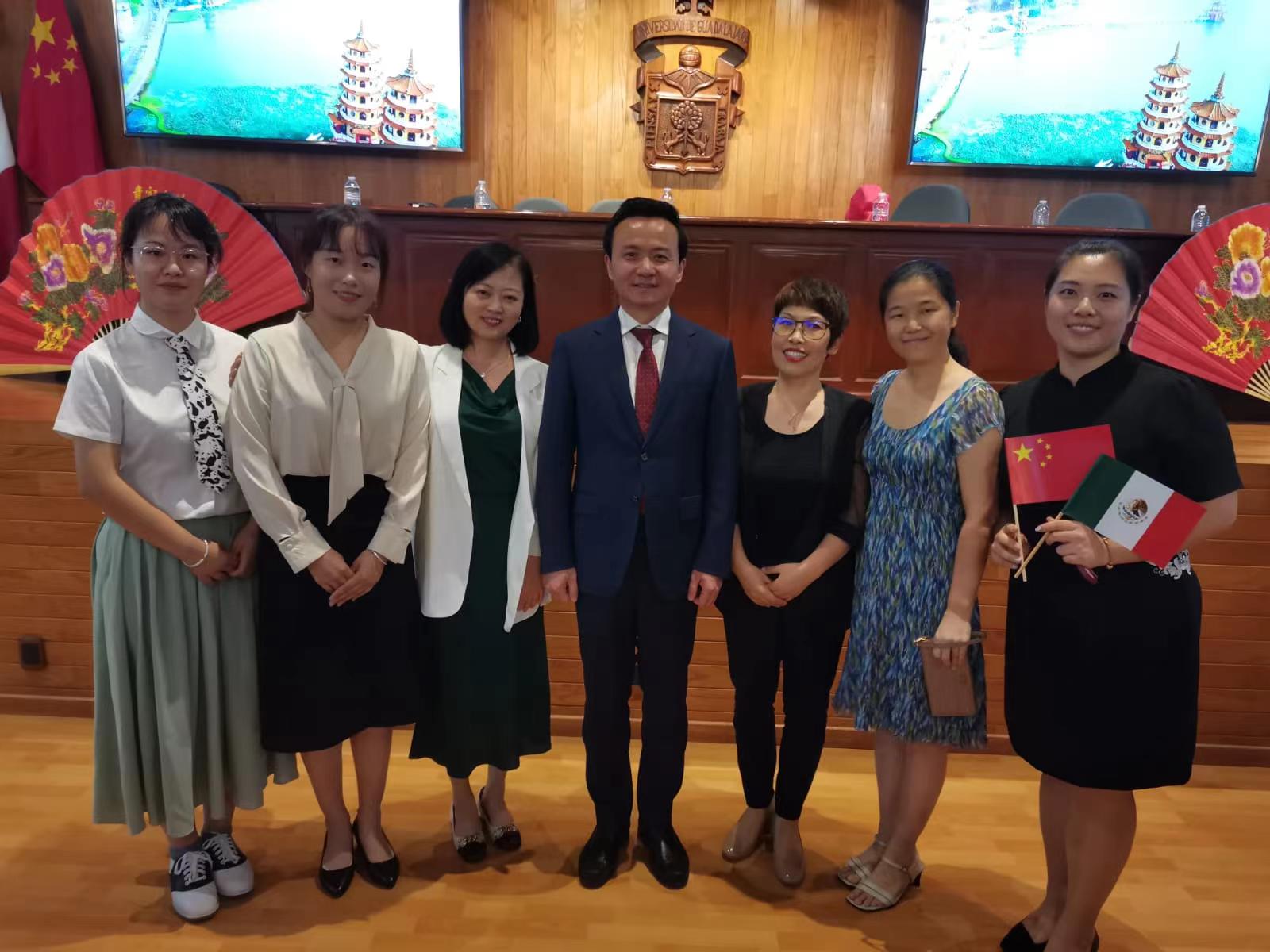 墨西哥时间2023年8月15日,中华人民共和国驻墨西哥合众国大使张润一行5人访问ac米兰合作院校墨西哥瓜达拉哈拉大学及瓜达拉哈拉大学孔子学院。一等秘书、教育专员吴小燕女士陪同来访。瓜大孔院是张润大使履新之后访问的墨西哥第一所孔院。