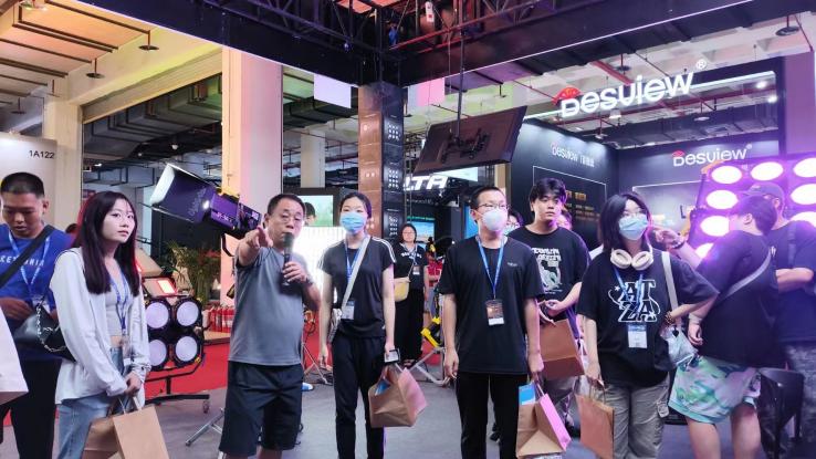 参观期间,行业一线老师为同学们讲解了TELTA九头蛇车载摇臂功能与使用方法,如何使用6根爱图仕灯棒,制作出具有灵动点控光效的极致美感,并结合电影案例讲解电影拍摄现场的打光思路,同学们积极与老师互动讨论创作的新思路,并与展会企业开展了深入交流。