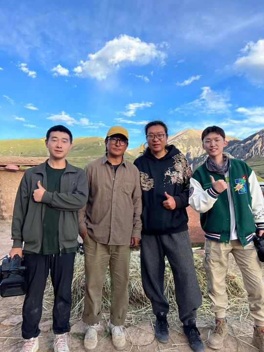 (从左到右依次:学生罗挺 导演达杰丁增 制片人苏明晴 学生张梁)