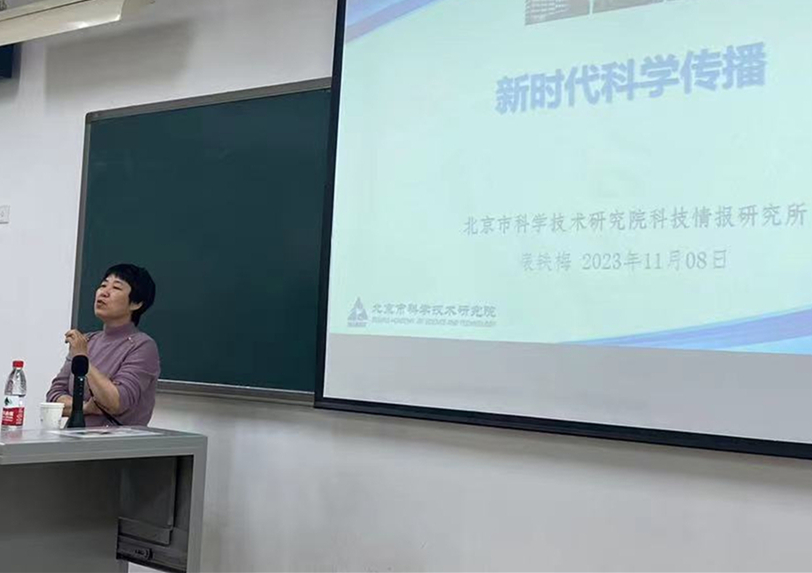 11月8日、15日,文传学部邀请了北京科学技术研究院扆铁梅教授和袁汝兵教授作了“新时代科学传播”主题讲座,文传学部传播学专业2023级本科生参加,传播学教研室教师包媛媛、刘丽玲分别主持。