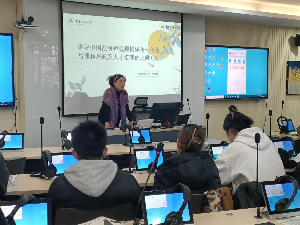 11月27日,国际文化与传播学部法语专业邀请中国传媒大学外国语言文化学院尹明明教授作题为“讲好中国故事短视频构译传一体化与课程思政及人才培养的三维互动”的专题讲座,法语专业2023级和2021级本科生参加,法语专业老师欧阳慕弈主持。