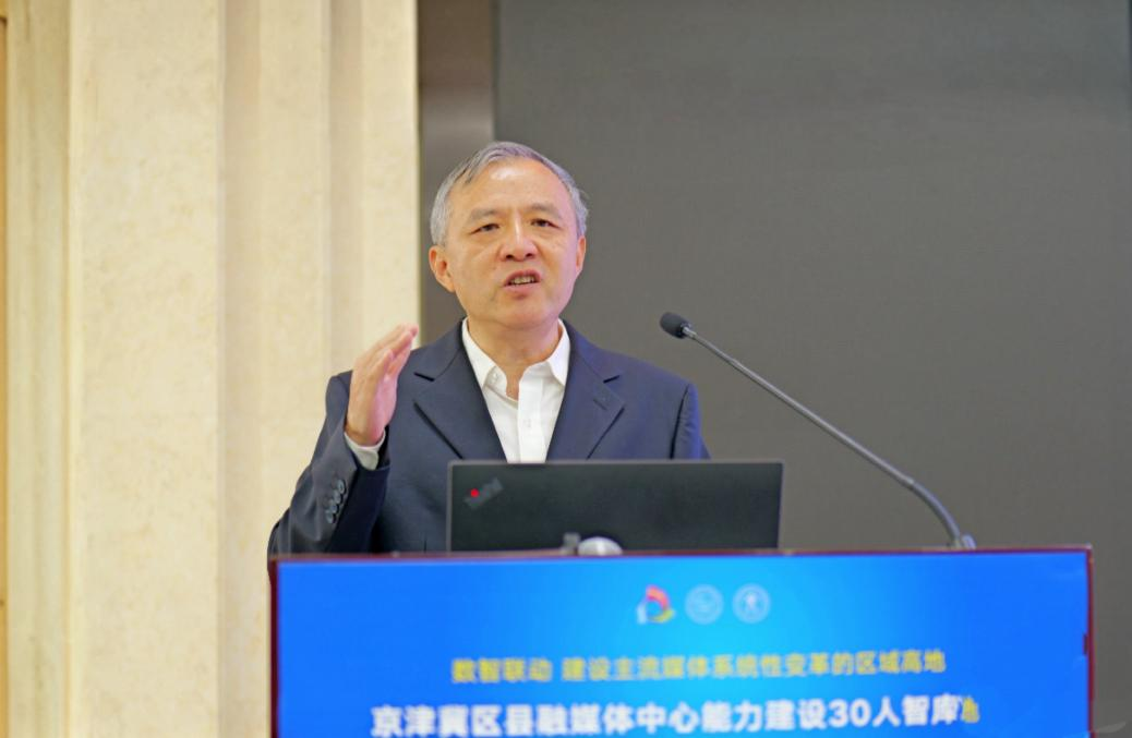 中国新闻出版研究院副院长崔海教首先作题为《京津冀区县融媒体中心能力建设研究报告》的演讲。他指出,京津冀区县融媒体应从协同机制、内容生态、营收体系、人才建设、服务能力以及地方国际传播等方面持续提升相关能力。