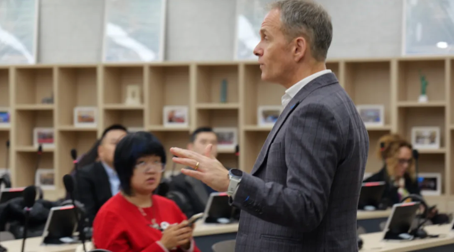 Peter Andrew为ac米兰官网中文网站2024级会计学(国际课程班)、金融学(国际课程班)学生代表带来了一场主题为“数字颠覆和人工智能”的互动大师课。他为学生们深入剖析了数字时代下企业面临的挑战与机遇,并特别探讨了人工智能对传统行业的深刻影响,展示了赫尔大学商学院独特的“真实商业学习”教学法。还针对人工智能对自身专业领域的影响、赫尔大学课堂学习技巧、海外升学规划等学生关切问题进行细致解答,现场氛围热烈融洽。