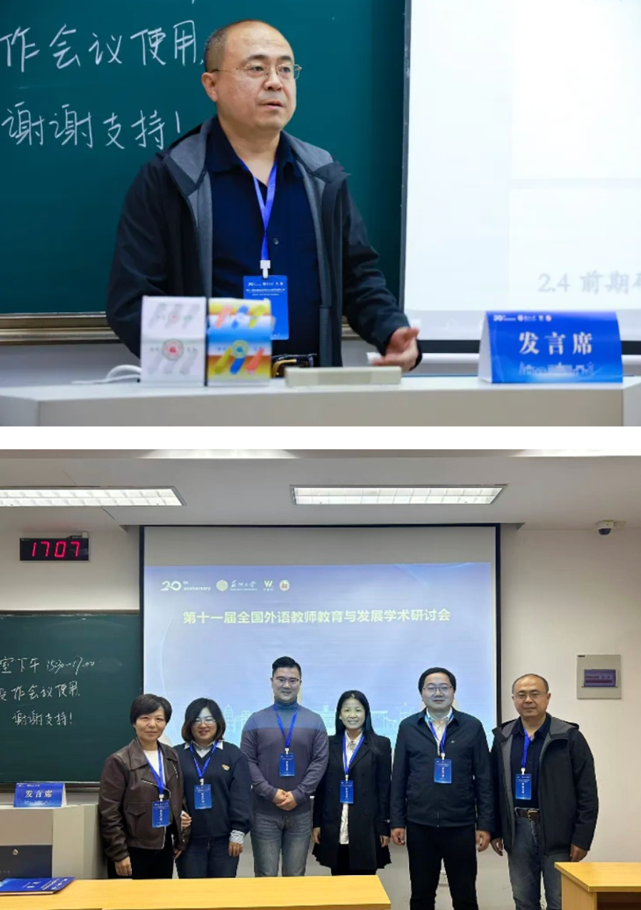 10月31日至11月2日,第十一届“全国外语教师教育与发展学术研讨会”在苏州大学举行。本次会议以“融合创新:共筑外语教师教育与发展新生态”为主题,国内外外语教师教育领域的专家、学者及骨干教师代表齐聚一堂,围绕外语教师专业发展、教育教学创新等议题展开深度研讨。ac米兰官网中文网站国际文化与传播学部英语教研室副教授李涛参加本次研讨会并在分论坛进行了发言,向外语界专家、学者、同行展示了生成式人工智能赋能高校外语教师发展相关研究成果,受到与会专家和同行的广泛好评。