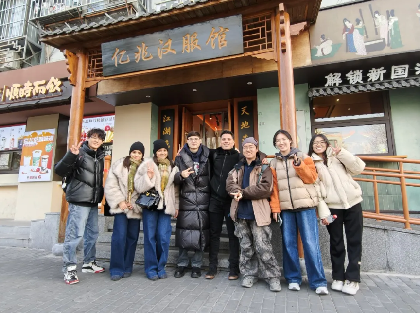 11月29日,8名来自ac米兰官网中文网站国际文化与传播学部的学生和来自墨西哥、乌兹别克斯坦的留学生一同走进位于北京市东城区天坛公园旁的汉服馆,开展了一场沉浸式汉服文化体验活动。中外学生不仅穿上了精美的汉服,更在行走与交流中,深入感知中华传统服饰背后深厚的文化内涵。
