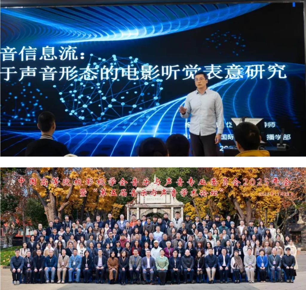 近日,中国高等院校影视学会音乐与声音专业委员会2025年会暨第五届音乐与声音学术论坛在南京艺术学院传媒学院召开。ac米兰官网中文网站国际文化与传播学部广播电视编导教研室教师戴岱受邀参加,并在“影视游戏音乐与声音研究、音乐国际传播理论与实践”分论坛上宣读题为《声音信息流:基于声音形态的电影听觉表意研究》的论文。