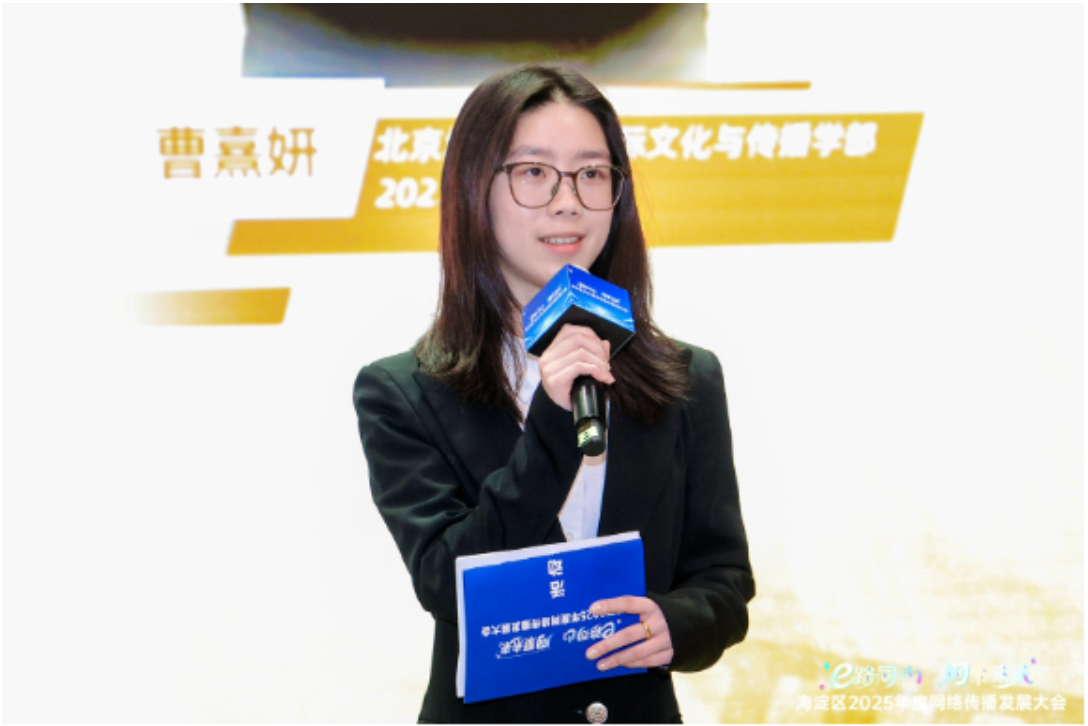 在海淀区2025年度网络传播发展大会中,2023级英语(国际传播)专业学生曹熹妍以本土青年的视角分享了参与感受,坦言选择本专业的初衷就是想用所学记录并表达自己热爱的城市。通过参与活动,她不仅深化了对专业实践的理解,更收获了与区融媒体中心建立实习实训深度联动的机会,得以从课堂走向一线,用专业能力助力海淀提升对外传播力,切实肩负起新时代青年传播者的使命与担当。同台发言的还有中国人民大学新闻学院副院长宫贺,北京语言大学世界汉学中心、一带一路研究院博士后研究员、青年汉学家李明诚。