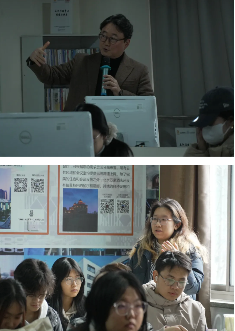 作为本次交流核心环节的“新传媒文化沙龙”,李仁淑教授、由甲助教授分别以“跨文化影像传播”“AI 与新传媒教学模式”为主题开展分享,结合行业经验与前沿研究成果,为同学们深入解析中韩影视教育的创新路径。