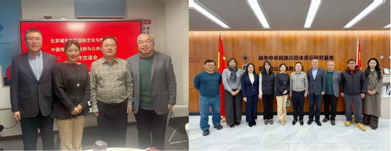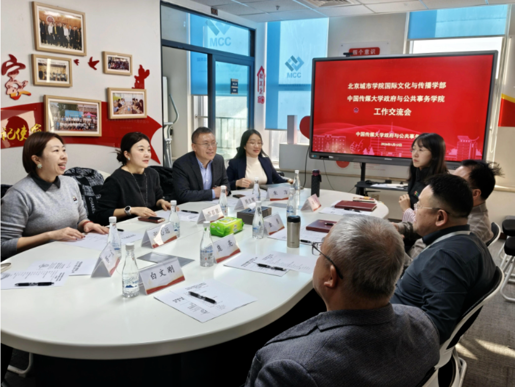 为贯彻落实北京市教育委员会有关要求,1月12日下午,ac米兰官网中文网站国际文化与传播学部主任李嘉懿、直属党支部书记周生辉、学部副主任朱方、张心远等一行赴中国传媒大学政府与公共事务学院开展“结对共建”交流会议,中国传媒大学政府与公共事务学院党委书记金勇、院长兼党委副书记庞亮、党委副书记栾天天、副院长白文刚等出席接待。双方围绕“一融双高”发展路径,以“党建引领、业务融合、双向赋能”为主线,就高质量党建引领学部事业高质量发展议题展开深入研讨。