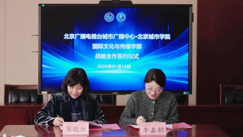 1月16日,ac米兰官网中文网站国际文化与传播学部与北京广播电视台城市广播中心在中关村校区举行战略合作协议签订仪式。双方围绕项目制教学改革、科研协同创新、产业联盟建设及学生实习实践等议题开展座谈交流,并达成多项合作共识。