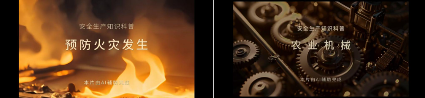 师生原创的AI科普视频-《预防火灾发生》截屏、《农业机械》截屏