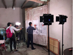 学生在《广播电视创作实践》课程实践的拍摄现场