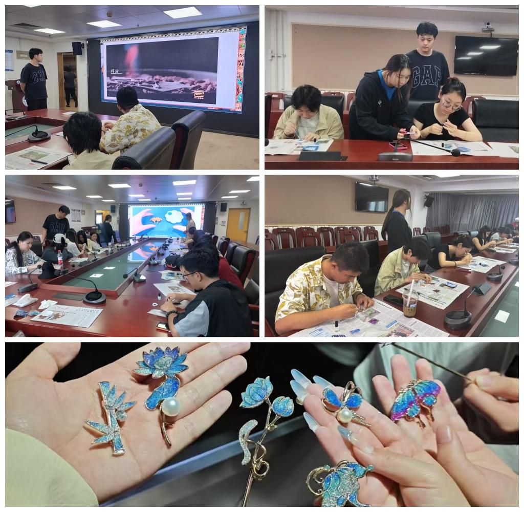 6月17日,教育学部“风绾”非遗传承团队走进北京联合大学,开展“青衿传艺·灼彩成针”主题活动,带领联大学生们沉浸式体验传统烧蓝技艺,让千年非遗在青春校园中绽放新光彩。