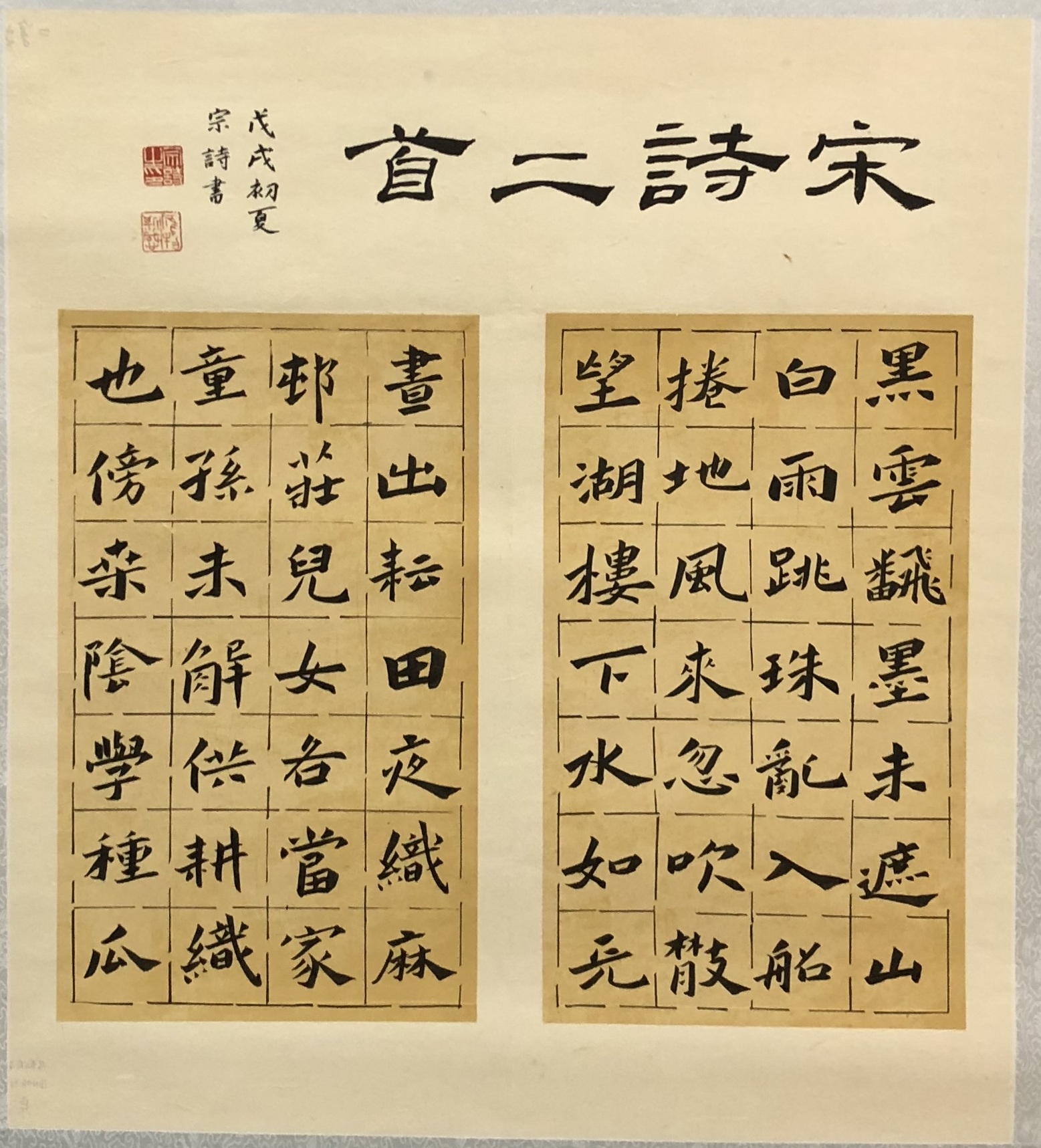 图3 书法实训中心 五、课程设置 本专业设立书法技法教研室、史论教研室,依照“书法+教育”特色,书法技法与理论研究并重,在课程开设上实现文化基础课程、技法实践课程和书法理论课程三位一体,通过篆书、隶书、楷书、行书、草书、中华文化史、中国书法史、古代书论、汉字学、书法教学法等课程的学习,培养学生全面掌握书法的基本理论、基本知识和基本技能,为中国书法文化的传承、发展和繁荣做出贡献。 六、实习实践 本专业课程设置体系实行“校内学习、校外实践”相结合的专业学习方式。通过校内学习和校外实习,在提高书法专业素养的同时,让学生对书法专业有更深层次的认识,在巩固专业知识的同时,让学生加深对书法的理解,增强学生综合实践能力。校外实习基地有中央数字电视书画频道、北京御笔坊毛笔博物馆等单位,中国人民大学附属中学实验小学、北京书法学校、海淀图强二小、顺义木林中心小学、沙岭小学等公立中小学,北京汉翔教育、笔端教育、博文教育等书法培训机构。校内外联动,协同育人,集中安排学生书法教学实习实践。