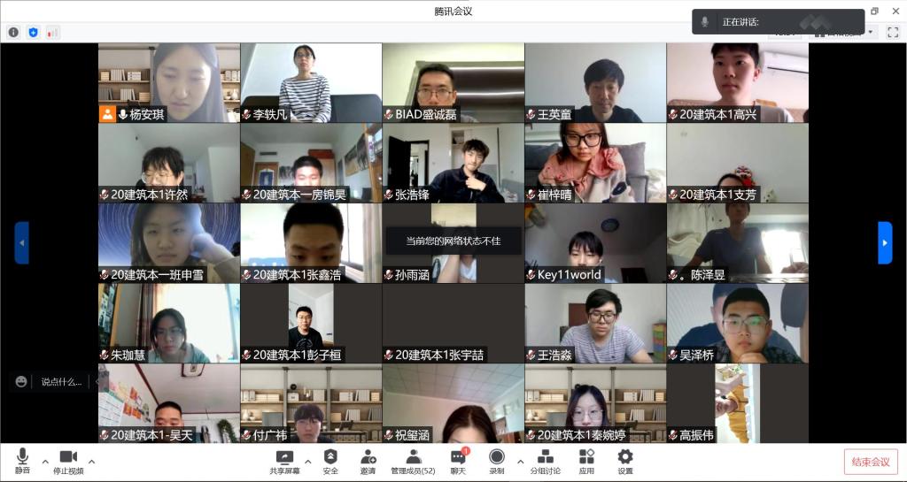 在线上评图会中,任课老师首先向各位同学提出了评图活动的要求和安排。而后,每个班级被划分为三组,评图专家与各组同学分别进行一对一的交流和指导。每位同学的设计图纸都获得了专家们细致的批改和指正。评图过程中,专家老师们以颇为深厚的专业工作经验为每位学生设计中出现的问题和所遇困境,提供了修改思路与完善建议。本节课的课程效果,深得学生们的好评。