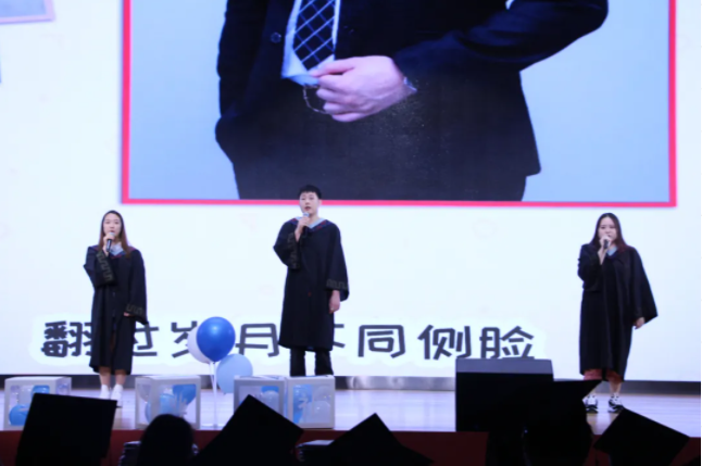 伴着于岑淼、李岩、杨楠同学演唱的《起风了》,各专业主任上台寄语,希望毕业生可以继续奋力追梦也要常回母校转一转。