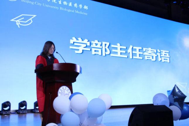 学部主任王辉在临别之际叮嘱同学们要坚持梦想,保持善良,保持乐观,在自己专业领域里发光发热,成为人们生命和健康的守护者。