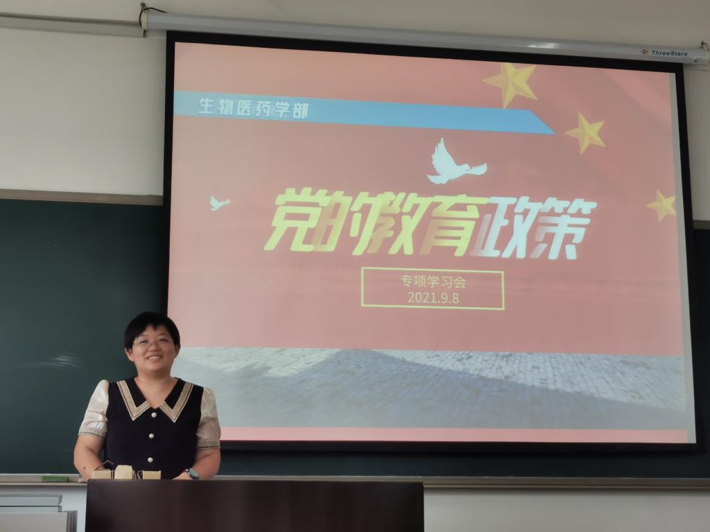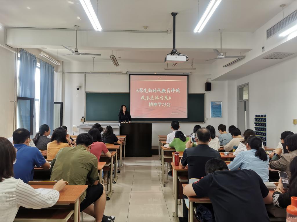 2021年9月8日,生物医药学部在航天城校区综合楼309召开全体教师会,就党的教育方针和中共中央国务院办公厅印发的《深化新时代教育评价改革总体方案》相关内容进行专题学习。