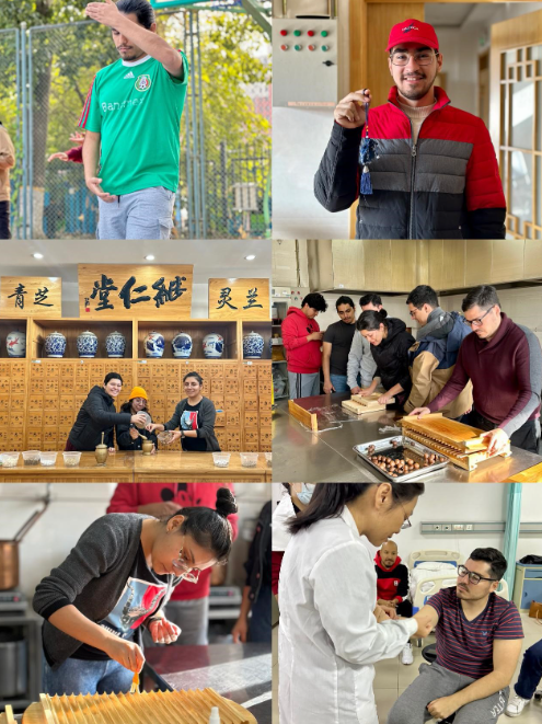 讲座中,四位老师带领留学生们探索了“养生功夫”的奥秘。通过穴位按摩专题讲座,讲解了蕴藏在人体中的中医哲理,留学生们也初步体验了拔罐、艾灸等传统中医疗法。在大山楂丸制作课上,同学们学习了“药食同源”的中医理念,体验了大山楂丸的制作工艺。讲座后,老师向同学们介绍了香囊与艾条的历史背景和制作手法,并指导大家做出了美观又实用的香囊。