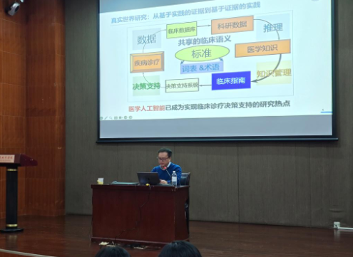 12月6日,生物医药学部邀请到北京交通大学周雪忠教授开展 “真实世界中医药数据挖掘方法的研究与应用”主题讲座。生物医药学部银龄教师乔延江教授、学部全体专任教师、信息学部教师代表及中药学专业全体研究生、2023级本科生,共计200余人参会。