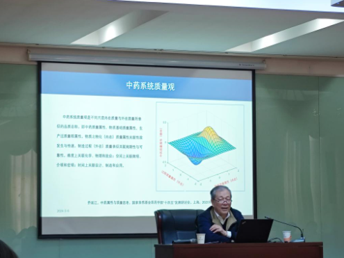 乔延江首先以“方与剂”“质与量”“量变与质变”等关键词结合中药质量与质量标准在研究技术和研究模式等领域的最新进展阐释了中药系统质量观,并从中药物质质量属性构效关系层面、过程质量传递的规律性和周期可靠性等方面结合举例进行了深入讲授;又以《中药标准管理专门规定》(征求意见稿)中的八项基本原则以及中药材、中药饮片、中药配方颗粒(提取物)、中成药的标准进行了针对性解读和强调,为学部中药学数字化平台建设明确了方向和标准参考。