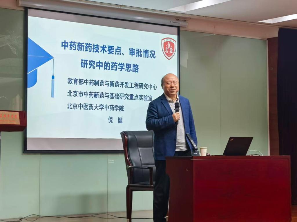 讲座中,倪健教授系统梳理了中药新药从研发到审批的全过程,涵盖中药新药批准情况分析、申报途径、研发工艺流程、工艺技术分析、质量要求分析、审批现状等内容,并结合实际案例展开深入剖析。他还对2025版《中国药典》中成药标准的修订动向进行了专业解读,为师生的科研与学习提供了前沿指引。