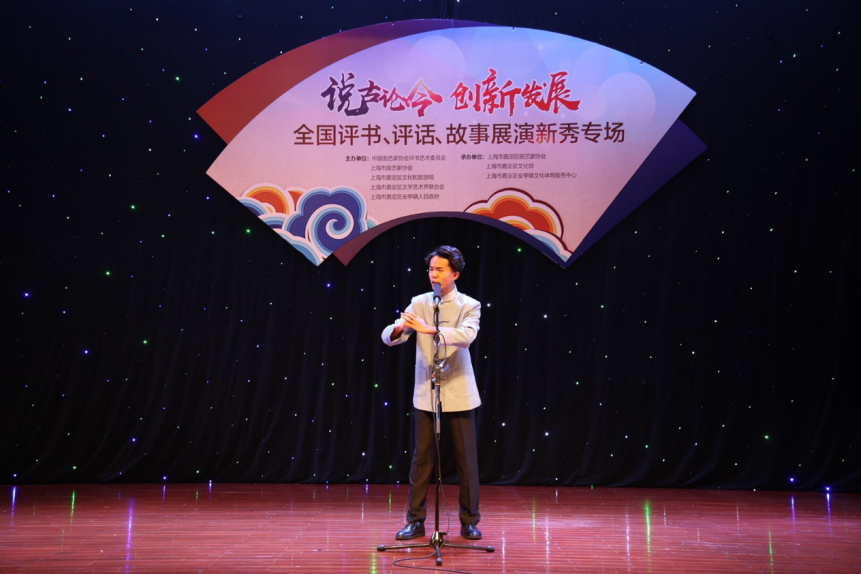 活动中,孙静宇同学表演了评书《封神·火烧琵琶精》,董润泽同学表演了评书《民族魂》。展演得到了众多专家和老师的肯定,并得到了南方苏州评话艺术家、上海曲协主席吴新伯老师、上海曲协副主席黄震良老师、评书艺委会主任杨鲁平老师的赞赏和鼓励。田连元先生还讲解了什么是评书表演,如何表演评书。